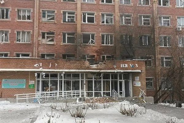 | On Jan. 19 the 3rd City Hospital in Donetsk suffered a direct hit from a Ukrainian GRAD missile. Photo: Novorossia.su |