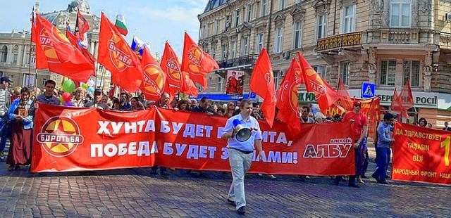 | Alexey Albu (center) leads antifascist march in Odessa in 2014. |
