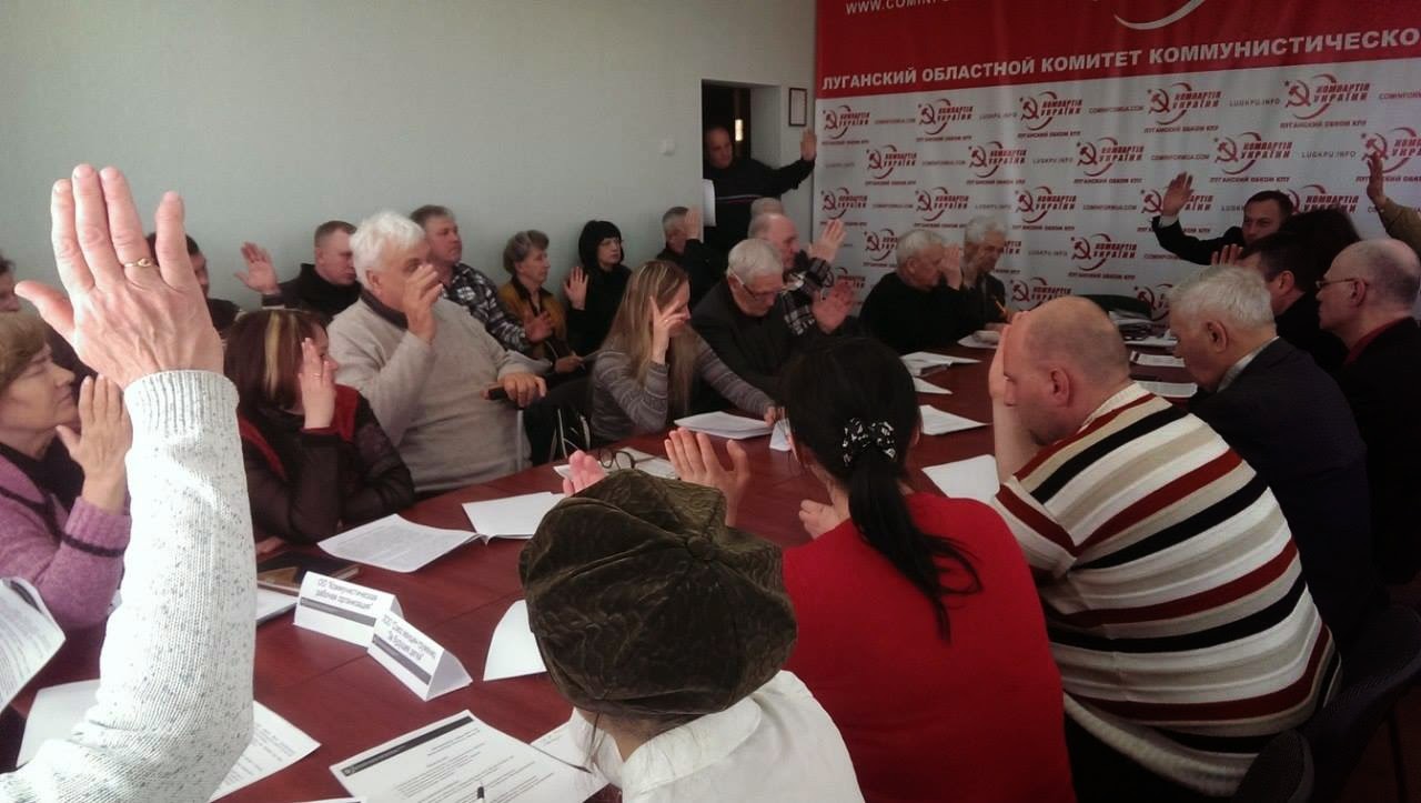 That is why we, the representatives of the Communist Party, Union of Left Forces, public organizations “Communists of Lugansk,” “Don,” “Communist Workers Organization,” “Intellectuals for Socialism,” “Anti-Fascist Committee of Lugansk,” Lenin Communist Youth Union (Komsomol), Union of Women Workers “For the Future of Children,” “Union of Soviet Officers,” “Social Democratic Initiative,” and “Green Ecological Union,” declare the establishment of a broad front of communist, socialist, workers’, anti-fascist and environmental forces, open to all who support the socialist course for Lugansk.