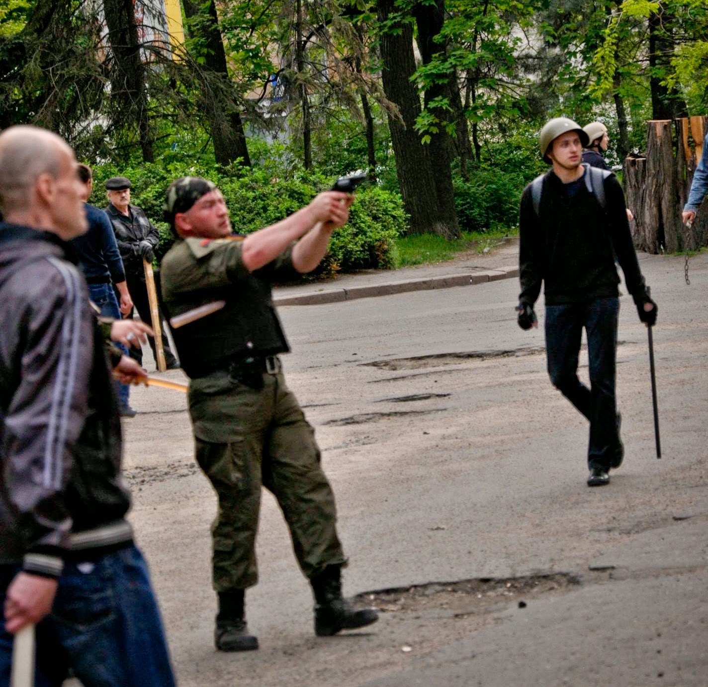From the point of view of military science, it was all for nothing. There was no defense as such. Well, there were pieces of asphalt that we broke up for half an hour before their arrival, broken pallets — all spontaneous.