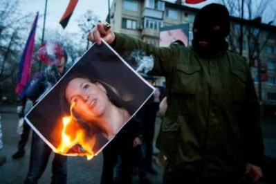 April 22 – Hundreds of residents demanded that Washington stop interfering in the internal affairs of Ukraine outside the U.S. embassy in Kiev. During the rally, protesters burned photos of Assistant U.S. Secretary of State Victoria Nuland, reported Russian Spring. [Translator’s note: Nuland was one of the main architects of the Maidan coup that overthrew Ukraine’s legally elected government in February 2014.]