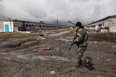 On the premises there are no chickens, between factory buildings wind blows interspersed with sudden gusts of snow. All that recalls that this was a poultry farm are pieces of eggshell in the mud underfoot. Evidence of the war– a few ruined buildings and a shell sticking out of the ground in the middle of the road. The employees are asked return to work now; Mozgovoi says it will recover. The workers are wondering whether they will be paid salaries. The brigade commander replied that this issue will also be addressed.