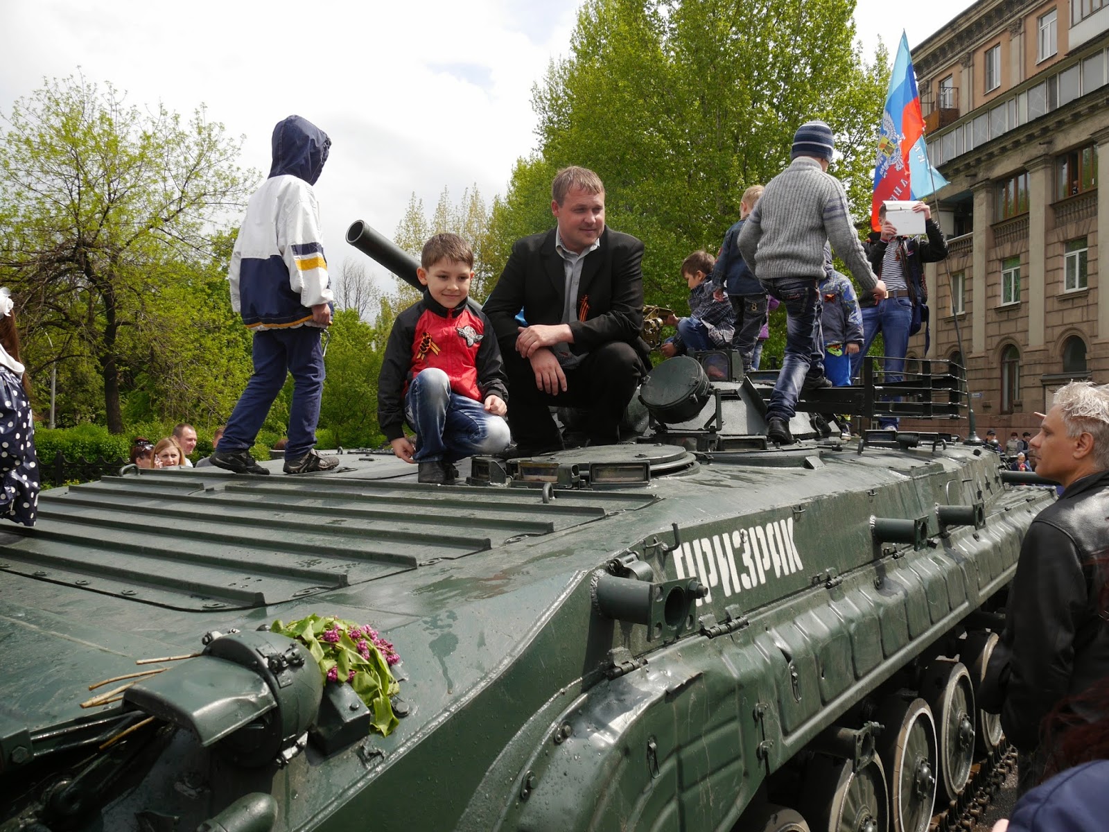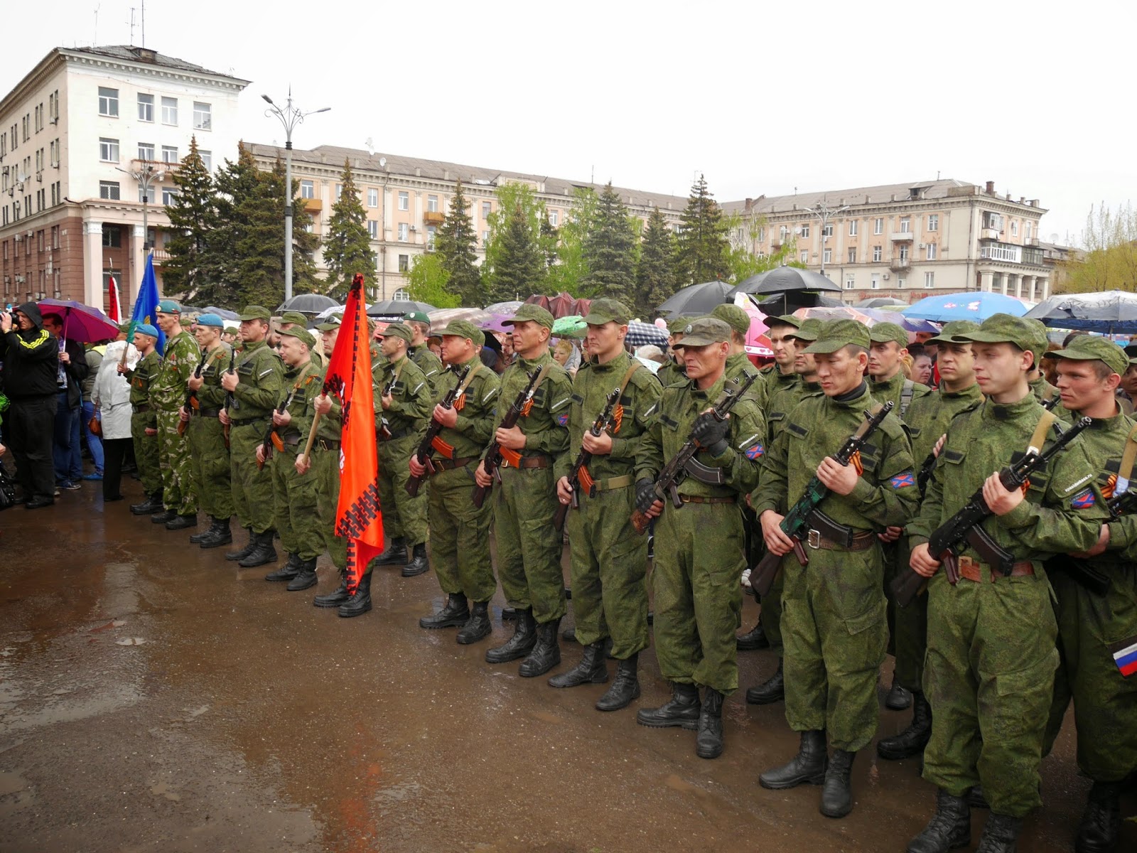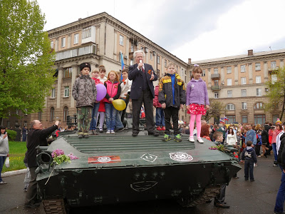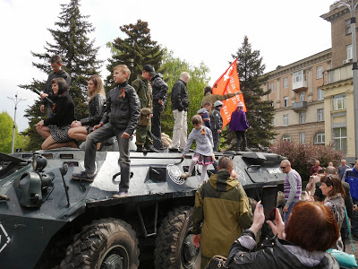 A military parade was held in Alchevsk. The first time in 24 years of independence [of Ukraine after the destruction of the USSR].