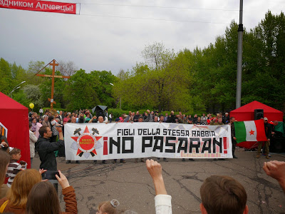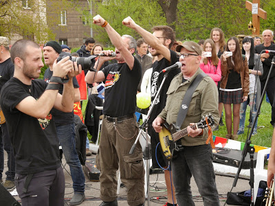 The men from Banda Bassotti were not timid, and refused to yield to blackmail by the “civil” authorities of Lugansk. Instead, they decided to give one more concert in Alchevsk, immediately after the military parade.