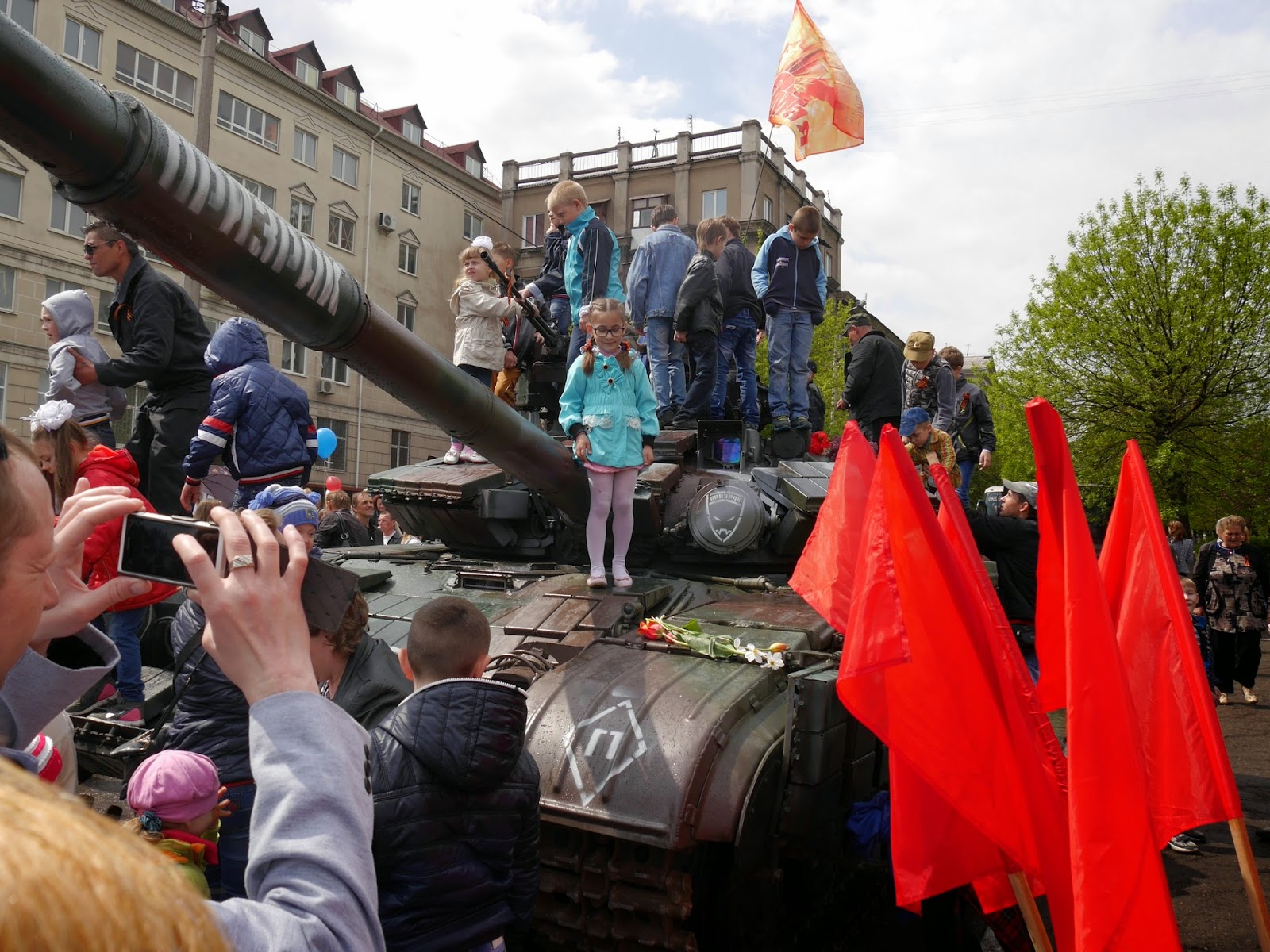 Armor was installed on Lenin Square, and everyone could climb on it. They gladly took advantage.