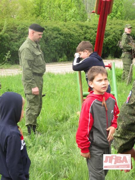 On May 9, 2015, immediately after the Victory Day festivities in the center of Alchevsk, in the Lugansk People’s Republic, we headed to a working-class district of the city, to a playground that his soldiers were helping to build.