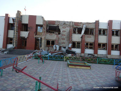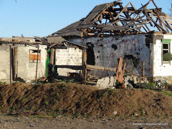 | Aftermath of Ukrainian shelling in Nikishino, Donetsk. |