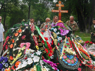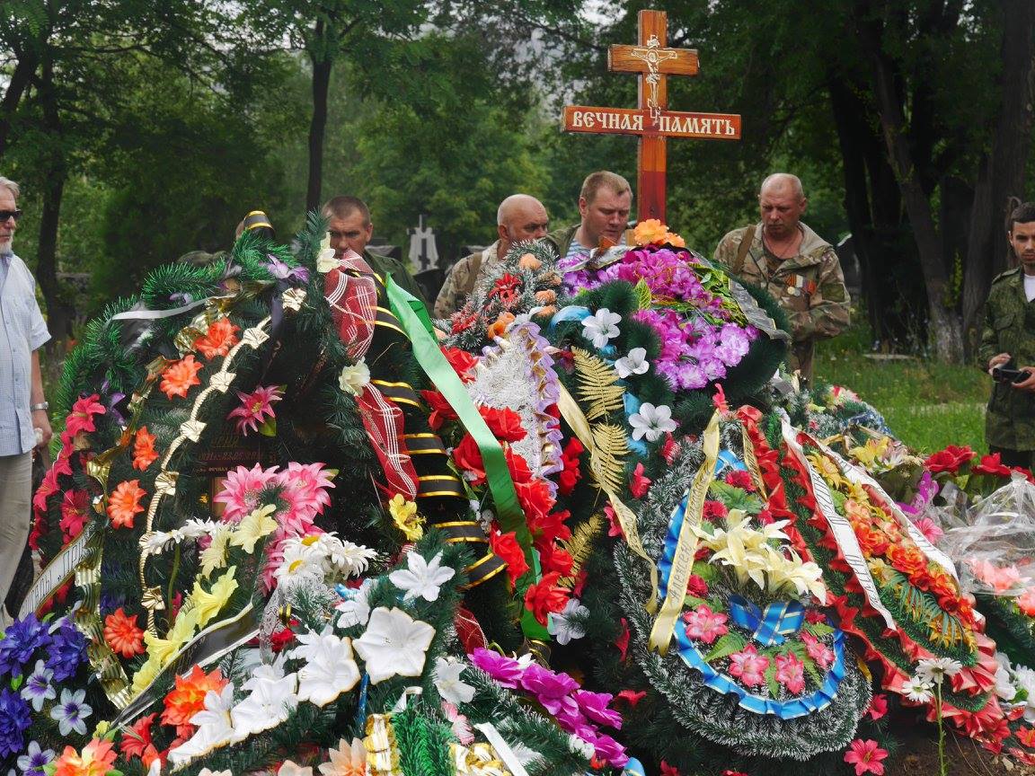 | Alchevsk, Lugansk: 40-day memorial commemoration for Commander Mozgovoi and Ghost Brigade martyrs, July 1, 2015. Photos: Ghost Brigade |
