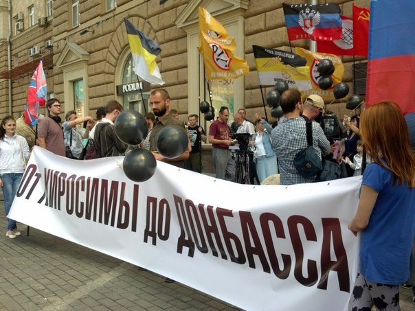 The main slogan of the event, which was also attended by activists of the Union of Mothers of Novorossiya, Noda, “Limonov’s” Cossacks, as well as representatives of the independent republics of Donbass – DNR and LC, was the slogan “From Hiroshima – to Donbass!” …