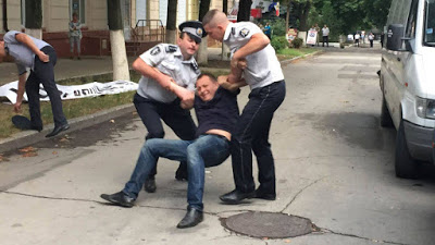 | Protest organizer Grigory Petrenko dragged away by police. Photo: Grenada.md |