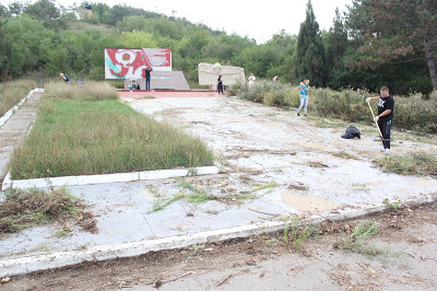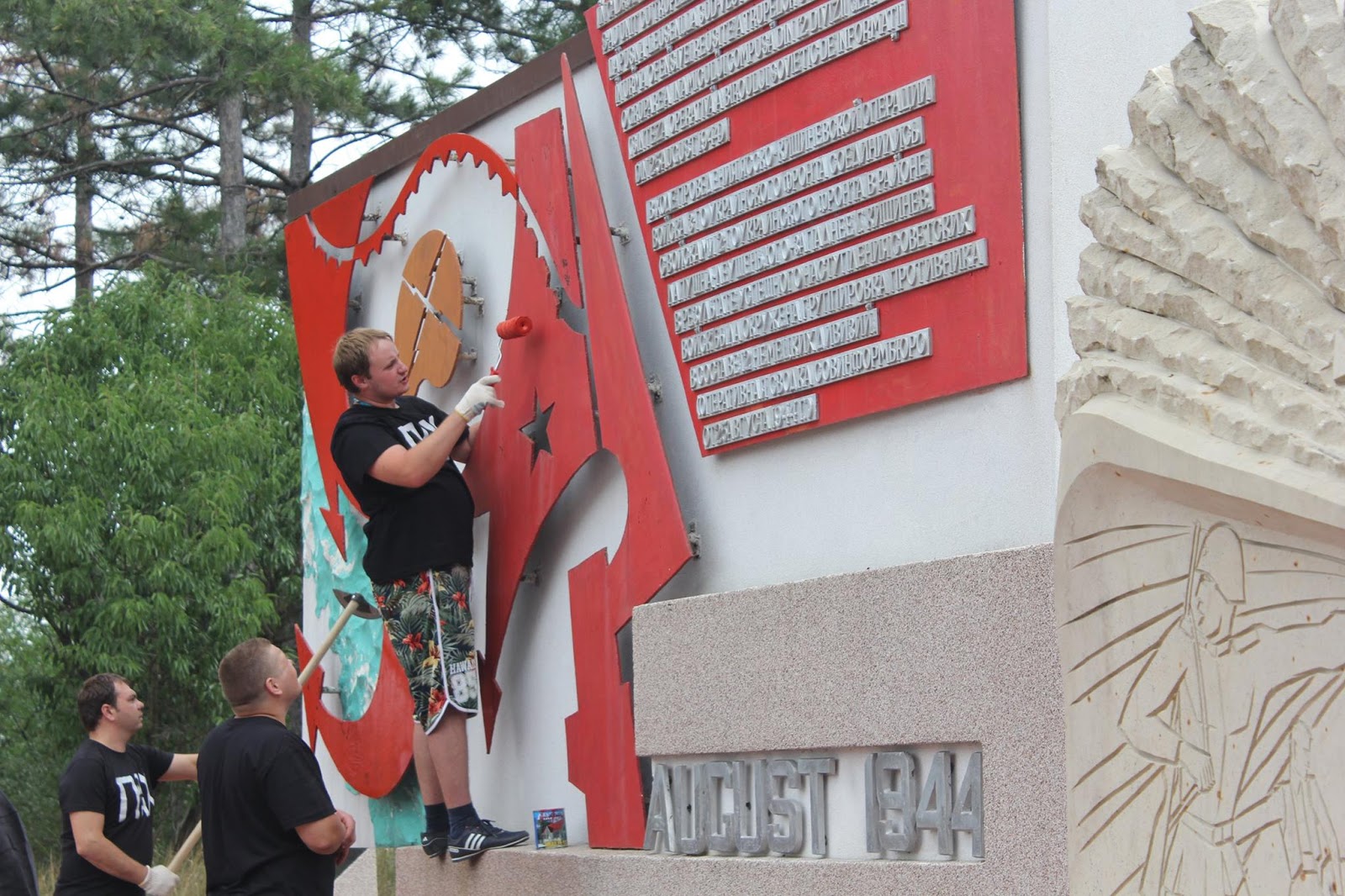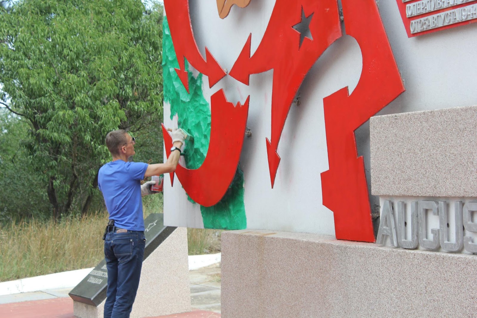 August 24: Members of the party “Our Home is Moldova” (Red Bloc) and their supporters held a Saturday subbotnik* August 22 at the at the memorial tank and monument in Leuseni.