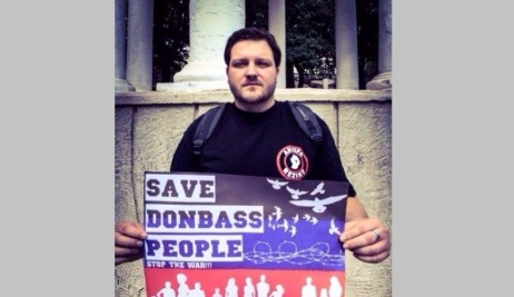 | Antifascist and Red Bloc activist Pavel Grigorchuk detained by police outside Prosecutor General’s Office, Sept. 6. |