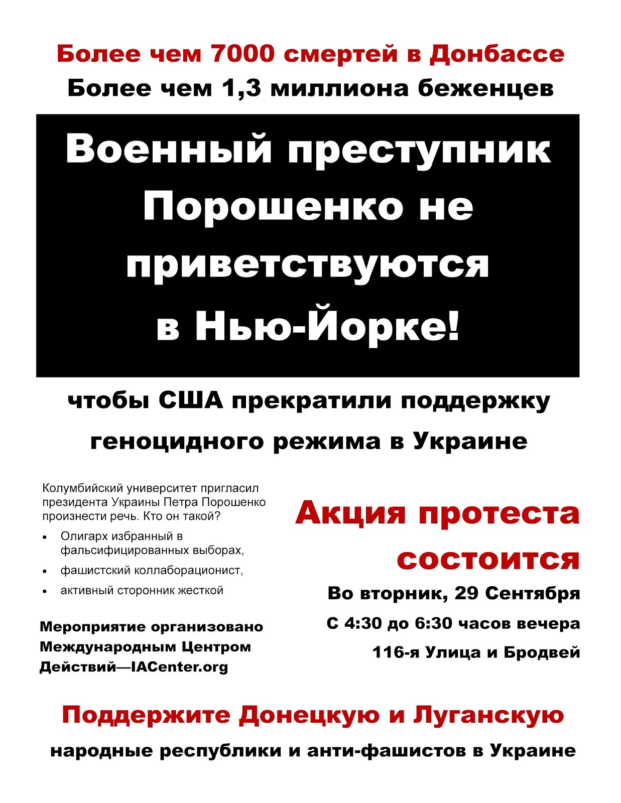 Военный преступник Порошенко не приветствуются в Нью-Йорке!