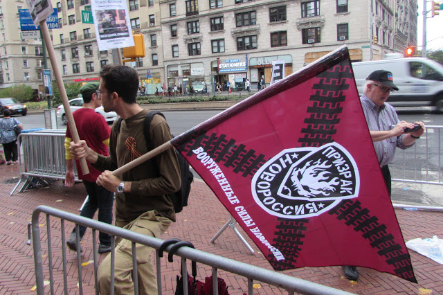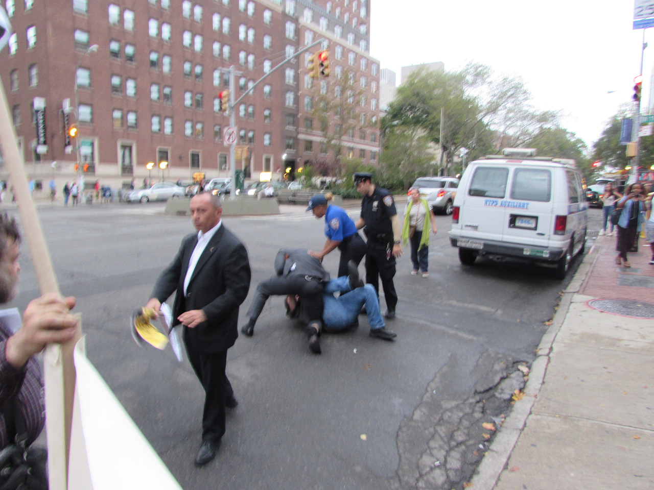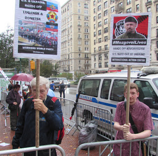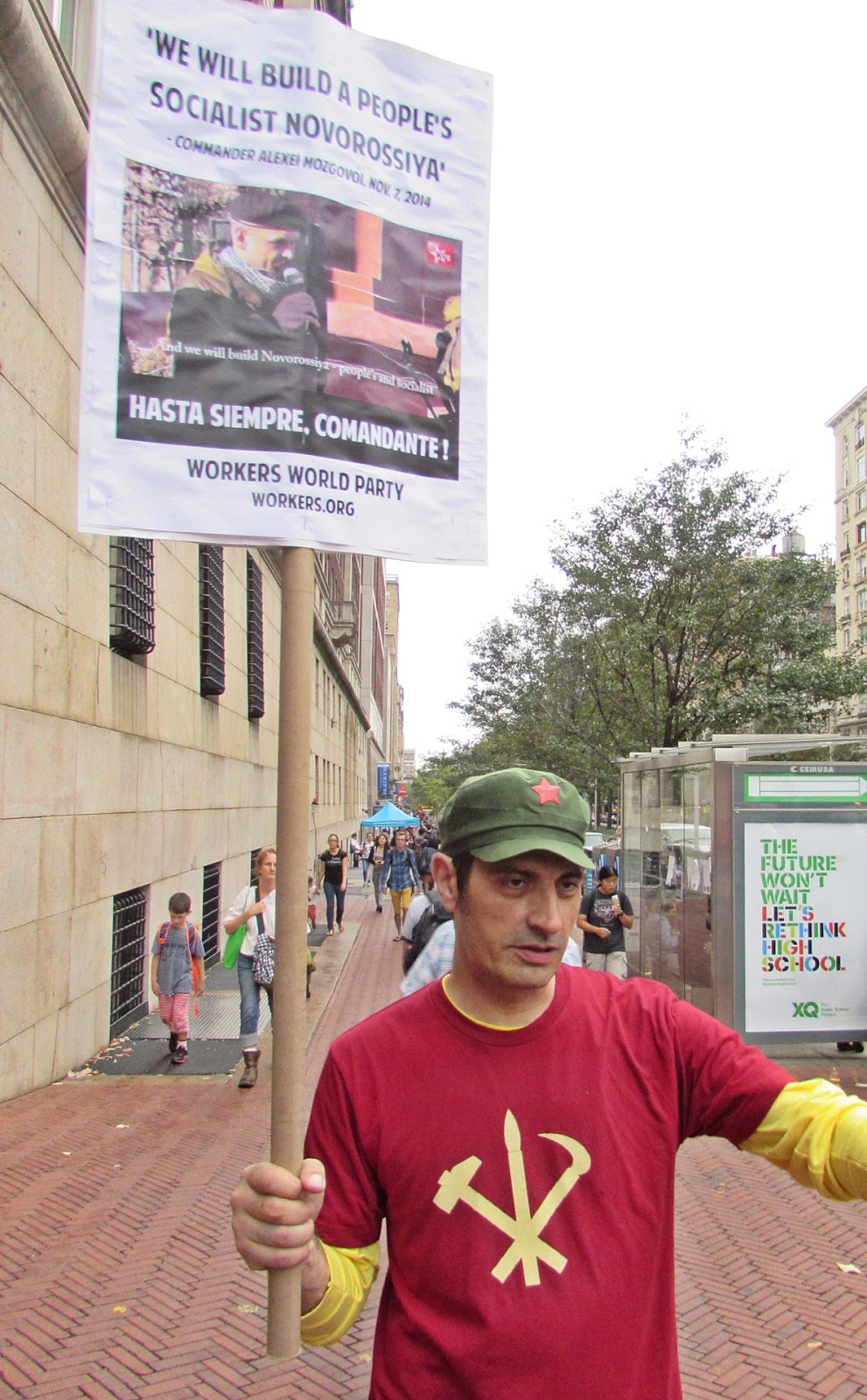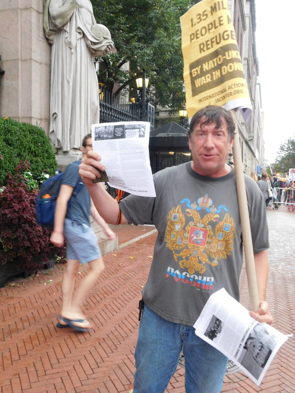 “We are here not only to condemn Poroshenko,” declared Greg Butterfield of the International Action Center. “We are here to condemn Columbia University President Lee Bollinger for giving this war criminal a platform to spread his lies about ‘Russian aggression’ in Donbass. We are here to demand that President Obama, Senator John McCain and other high officials in Washington stop funding and arming Poroshenko’s fascist junta.”