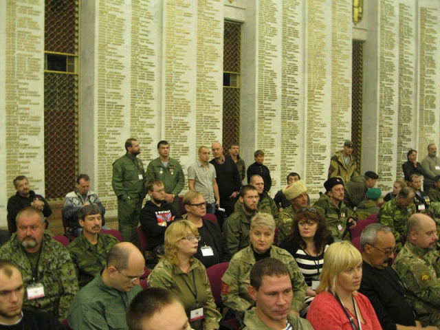 | Representatives of the Novorossiyan Ghost Brigade at First Congress of the Union of Donbass Volunteers. |