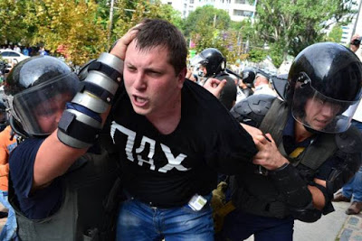 | Pavel Grigorchuk violently arrested by riot police on Sept. 6 in Chisinau. |