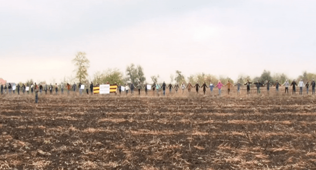 The action concluded when the activists went to each other and met at the border of the two villages.