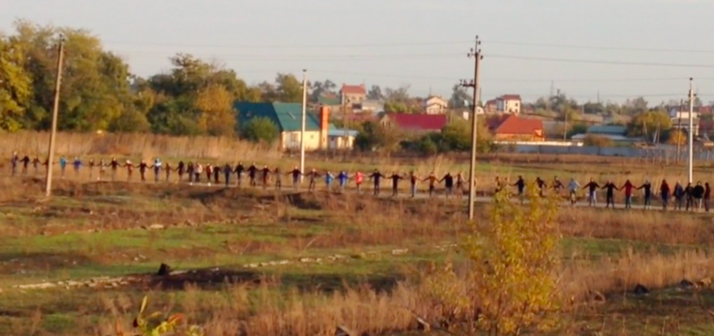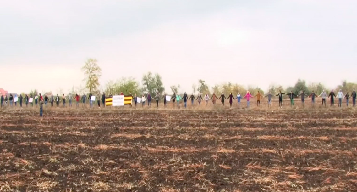 This time, Bessarabia activists in two neighboring villages linked arms and chanted “Bessarabia against repression,” unfurling a large banner with the same inscription. According to the organizers, the “human chain” of young people symbolized the unity of the peoples of Bessarabia against repression.