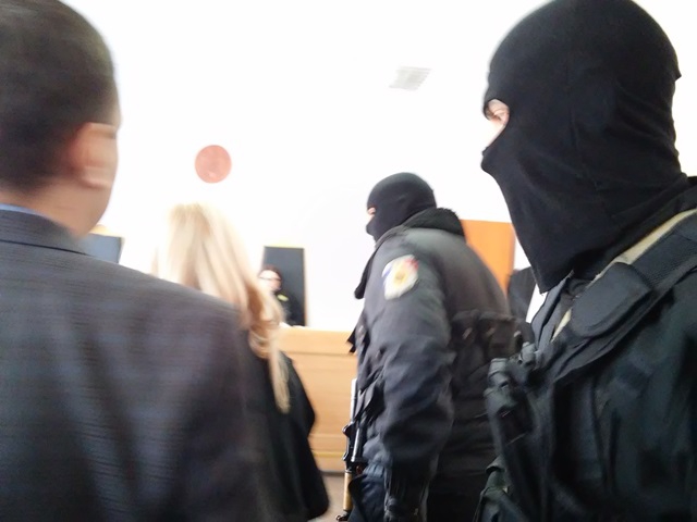 | Armed, masked Interior Ministry troops removed a photojournalist from the courtroom during the hearing of Petrenko Group political prisoners in Chisinau, Moldova, December 7. |