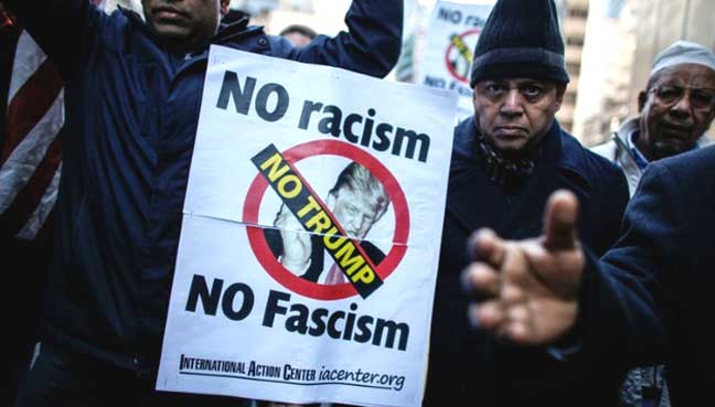 Trump is a demagogue who delights in sowing hatred. During his campaign this year he has made offensive comments about women and disabled people, as well as immigrants, Muslims and Black people. His role is to divide the working class, especially to make economically struggling white workers lash out at immigrants, Muslims, Black youths – anyone but their real enemy, the capitalist class.