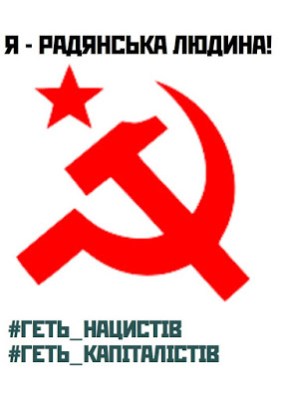 We therefore ask you to join in online an flash-mob by posting the graphic depicting the hammer and sickle with the words, “I am a Soviet person!” #геть_нацистів, #геть_капіталістів