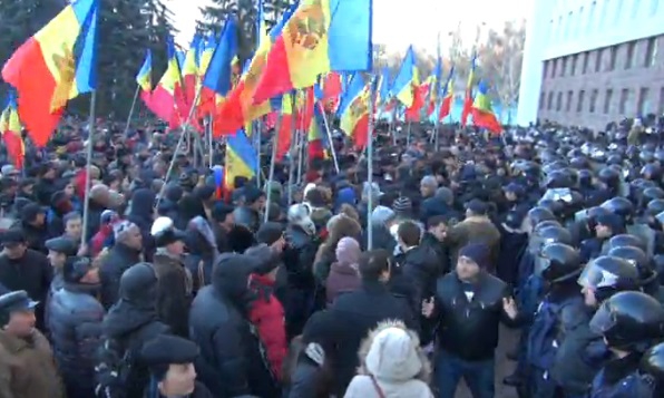 At the same time, thousands of people marched on the parliament to protest. They chanted in unison: “We are the people! Police, join us! Down with the Mafia! Early elections! Judas!”