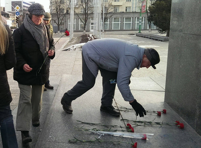Today, January 21, 2016, Lugansk and German communists jointly paid tribute to the memory of the great revolutionary and statesman V.I. Lenin, laying flowers at his monument in the center of Lugansk.