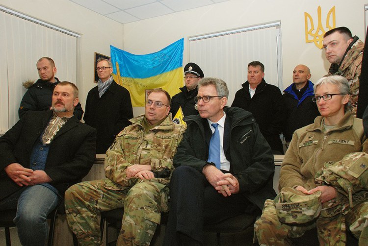 | Commander of U.S. Army in Europe Gen. Ben Hodges and U.S. Ambassador to Ukraine Geoffrey Pyatt at opening of Joint Operations Center in Dnipropetrovsk. |