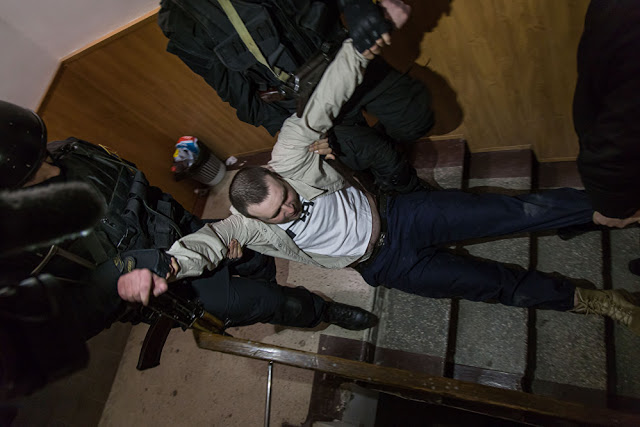 | Grigory Petrenko (center) being dragged from courtroom Feb. 15. |