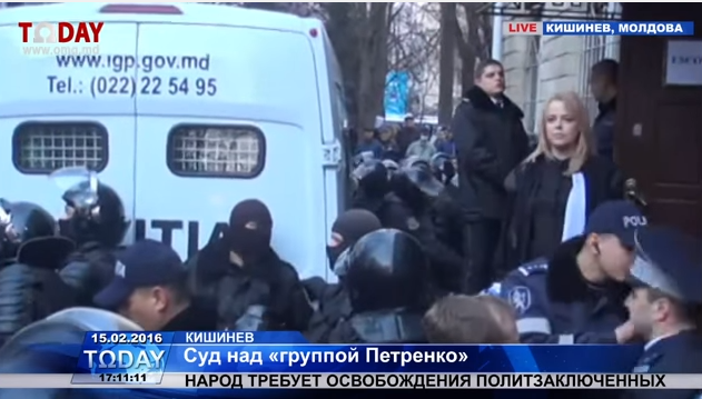 February 15: Hundreds of protesters, who came out to the Riscani sector courthouse to demand the release of the Petrenko Group political prisoners, continued chanting slogans into the evening.