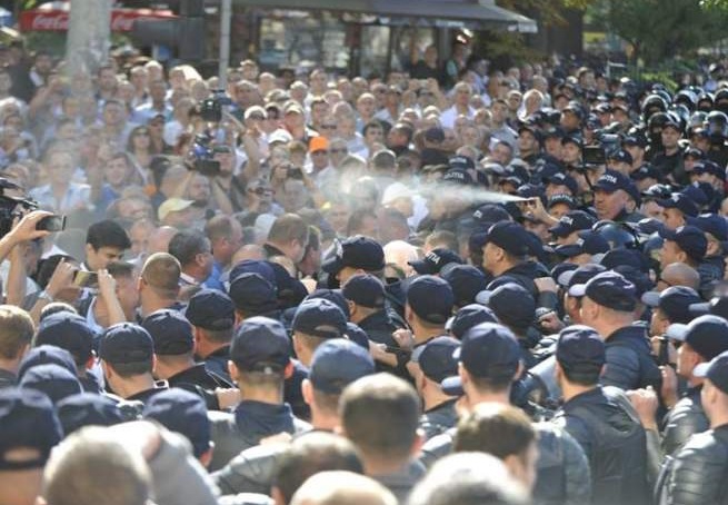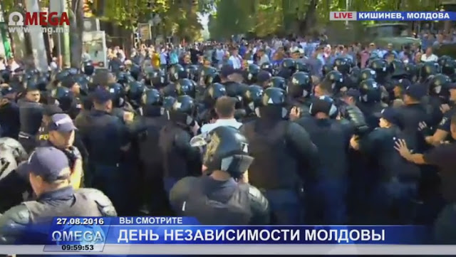 While citizens shouted “Down with the Mafia and down with dictatorship,” representatives of the country’s leadership, protected by thousands of police, laid flowers at the monument of Stefan cel Mare [Stefan the Great].