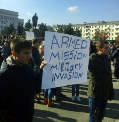 Over 15,000 people gathered under a statue of Lenin: youth, women, seniors, families, workers, with placards and banners screaming ‘NYET’ to the occupation of a foreign army in their Republic.