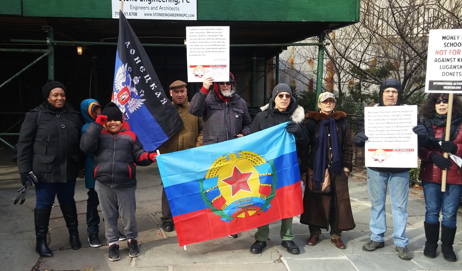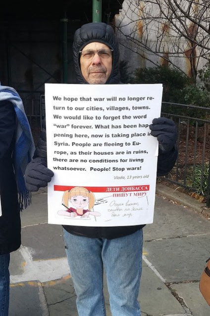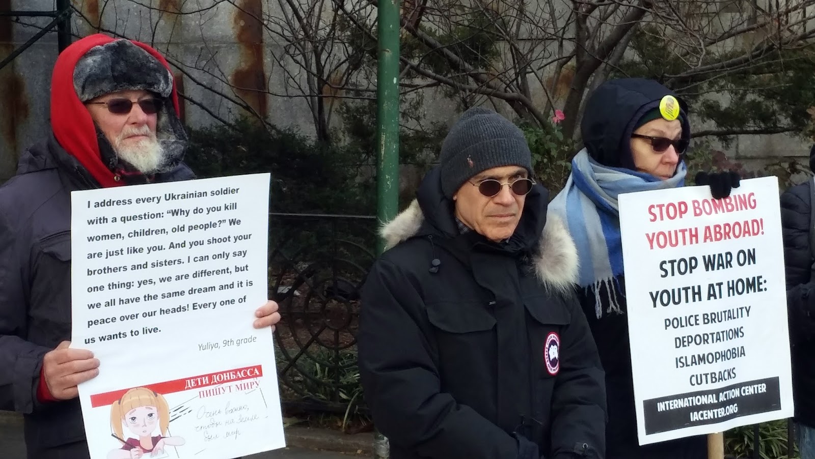 People chanted, “Stop the war on children from Lugansk to New York” and “U.S.-NATO out of Ukraine!”