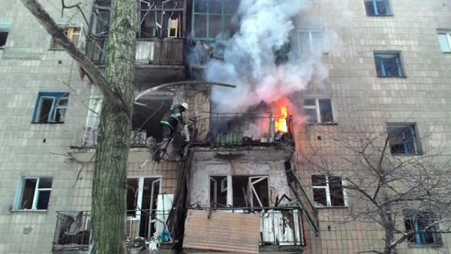 | Apartment complex in Donetsk shelled by Ukrainian forces January 29. Photo: DONI News |