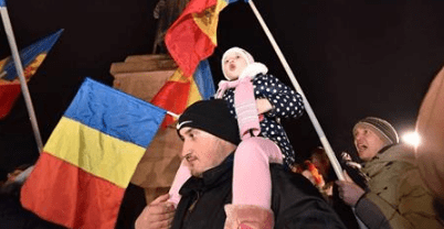 The protesters, who gathered in the center of Chisinau, are now chanting: “Bravo, Romania,” “Moldova,” “Moldova, wake up,” “Down with the mafia government,” “Forward, Moldova,” “Moldova, take to the streets,” and “We will not give up!”