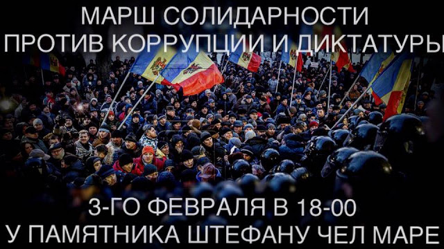 On social media, calls spread to come out on the evening of February 3 to the monument of Stefan cel Mare [Stefan the Great, a national symbol of Moldova] on a “March of Solidarity against Corruption and Dictatorship.” Among those supporting the call for the protest are leaders and supporters of Our Party, Dignity and Truth Platform and Our Home is Moldova (Red Bloc). The leaders of these parties claim to have nothing to do with the organization of the protest and called it a civil event.