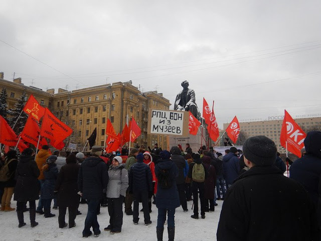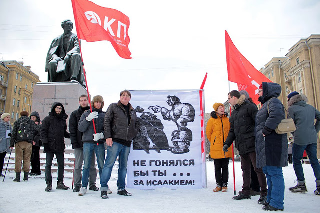 This year, protesters put a special emphasis on rejecting the impending transfer of St. Isaac’s Cathedral and other cultural monuments to the administration of the Russian Orthodox Church. The communists demanded the abolition of the law “On the transfer of property to religious organizations for religious purposes,” also known as the law on “restitution of church property.”