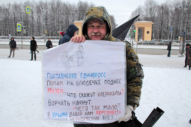 The “Anticlericalism 2017” rally was held in St. Petersburg (Leningrad), Russia, on February 5 at the monument to N.G. Chernyshevsky, dedicated to the anniversary of the adoption of the Soviet Government Decree on the separation of church from state and school from church.