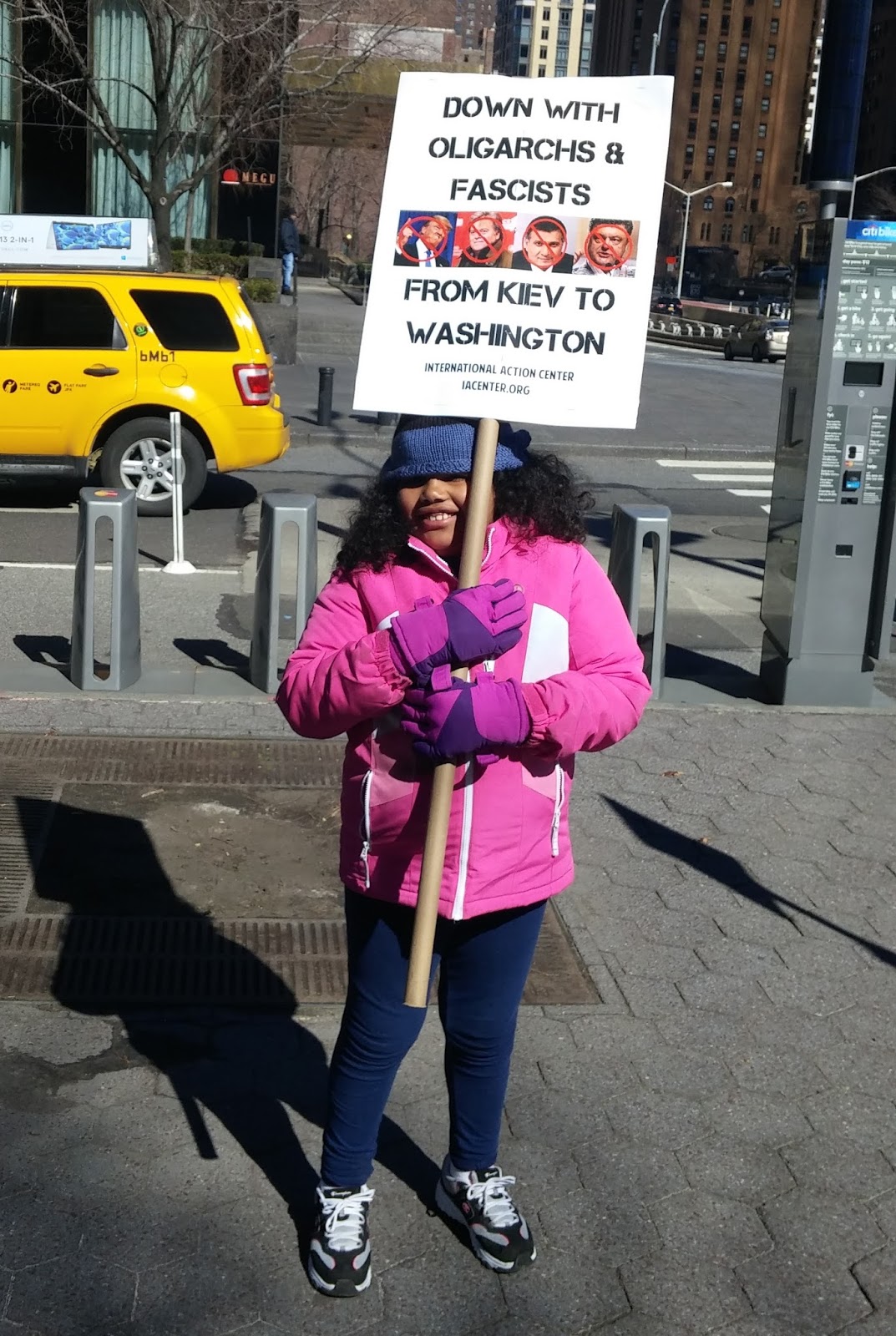 On March 5, opponents of the U.S.-Ukraine war against the Donbass region of eastern Europe picketed in frigid weather at United Nations headquarters in New York.