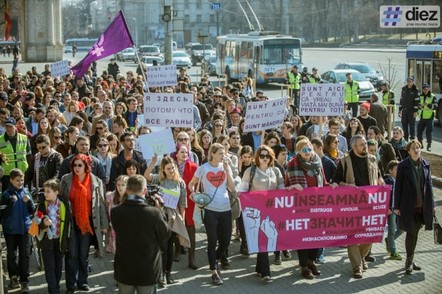 In Chisinau, there was a kind of International Women’s Day march on March 8. People marched through the capital’s Stefan cel Mare Avenue and chanted “no means no!”