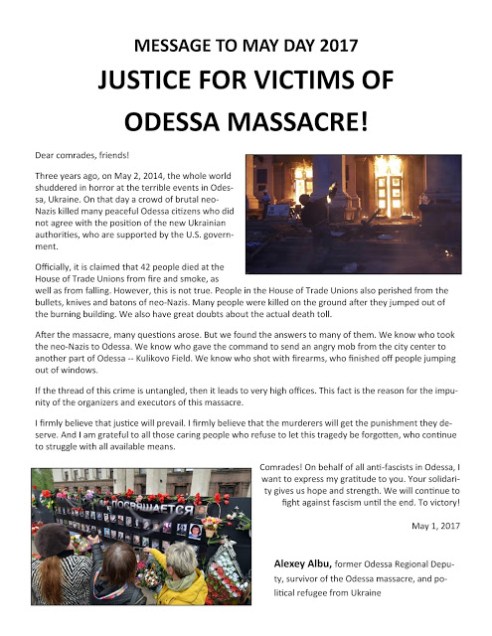 Comrades! On behalf of all anti-fascists in Odessa, I want to express my gratitude to you for your stance. Your solidarity gives us hope and strength. We will continue to fight against fascism until the end. To Victory!