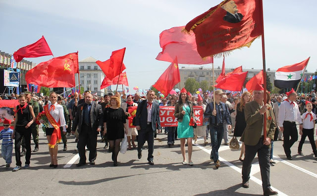 The Communists, for many years the organizers of the May celebration in Lugansk, formed a single contingent.
