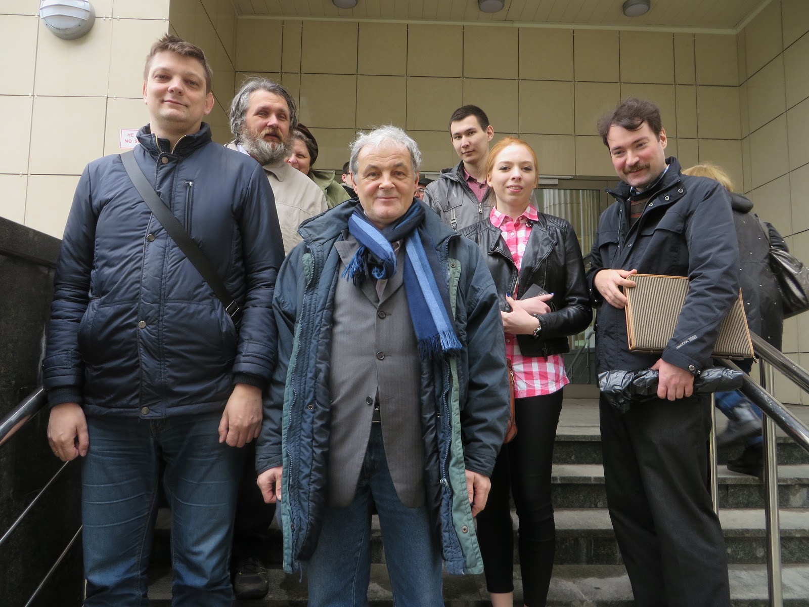 | Comrade Alexander Batov (left) with supporters after his release. Photo: ROT Front |