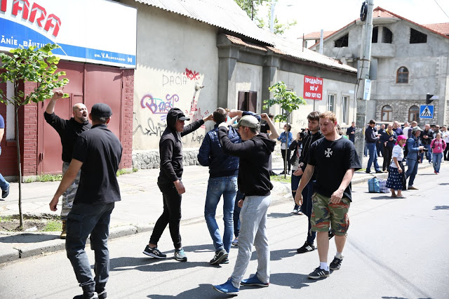 Disappointed Orthodox sang a farewell “Christ is Risen,” put down their anti-gay posters and headed for the central square, leaving behind about a dozen young people in clothing with symbols of the right-wing organization Noua Dreapta (“New Rights” – NM). These young people tried to attract the attention of the press and the police with homophobic shouts, but in vain. The police hurried to the buses, and journalists — to the press conference of the march.