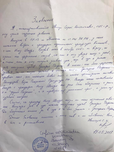 In the statement by Ivanchuk (a copy was made available to NM) says that Attorney Nick Shendri in October 2015 “summoned Sergei Ivanchuk.” Ivanchuk was then under preventive arrest in the capital penitentiary number 13, accused of mercenary activities (Article 141. Criminal Code of the Republic of Moldova). “He made me an offer, saying that if I wanted to see my wife and children, and if I want to get a suspended sentence, then in court I must testify against Gregory Petrenko,” wrote Ivanchuk.