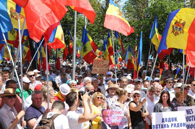 Chisinau, Moldova: Thousands of people protested in front of Parliament on Sunday, June 11, against the plan by deputies of oligarch Vladimir Plahotniuc and President Igor Dodon’s parties to change the electoral system.