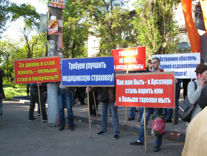 | Steelworkers at Ukraine’s ArcelorMittal-Kryvyi Rih plant protest for higher wages, May 2017. Photo: IndustriALL |