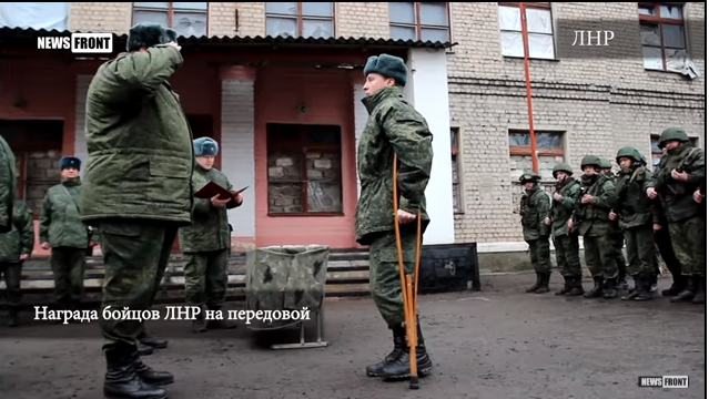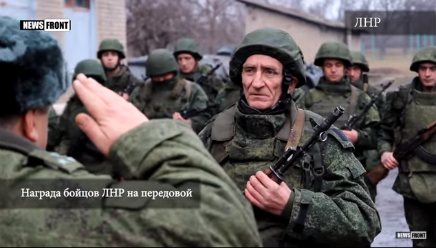 On New Year’s Eve, December 31, 2017, the head of the People’s Militia Department of the Leningrad People’s Front, Colonel M. Yu. Filiponenko made at special visit to the location of the Ghost Brigade, to congratulate the fighters and give them well-deserved awards for the summer and autumn battles along Bakhmutka [river in the Lugansk People’s Republic that forms part of the front line against the Ukrainian Armed Forces and neo-Nazi battalions].