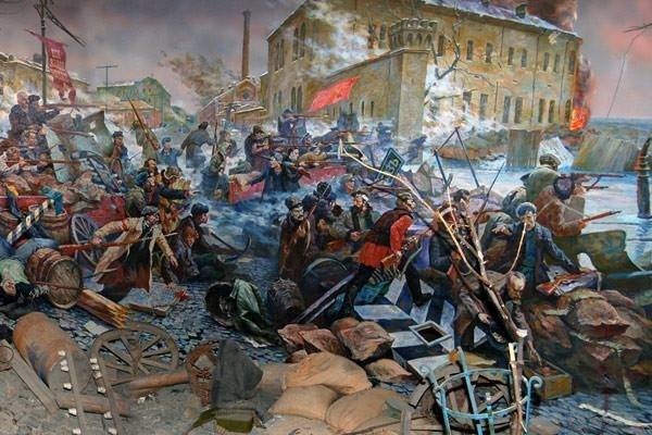 | Painting depicting the 1918 workers’ uprising at the Arsenal factor in Kiev, Ukraine. |