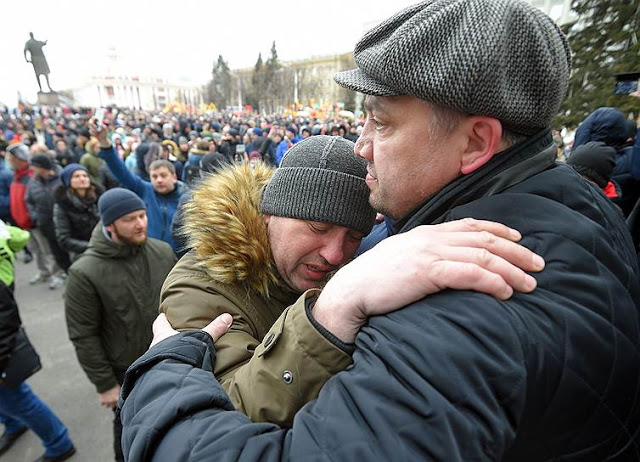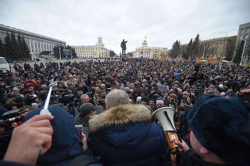 Instead of Putin, First Vice-Governor Vladimir Chernov and Vice-Governor Sergei Tsivilev, newly appointed to this post, went out to the protesters. According to journalists, Tsivilev knelt down and asked forgiveness from those “who got into this difficult situation.” The protesters were not satisfied with this and demanded the resignation of the city Mayor Ilya Sereduk and the governor of the Kemerovo region, Aman Tuleyev. Just resign …